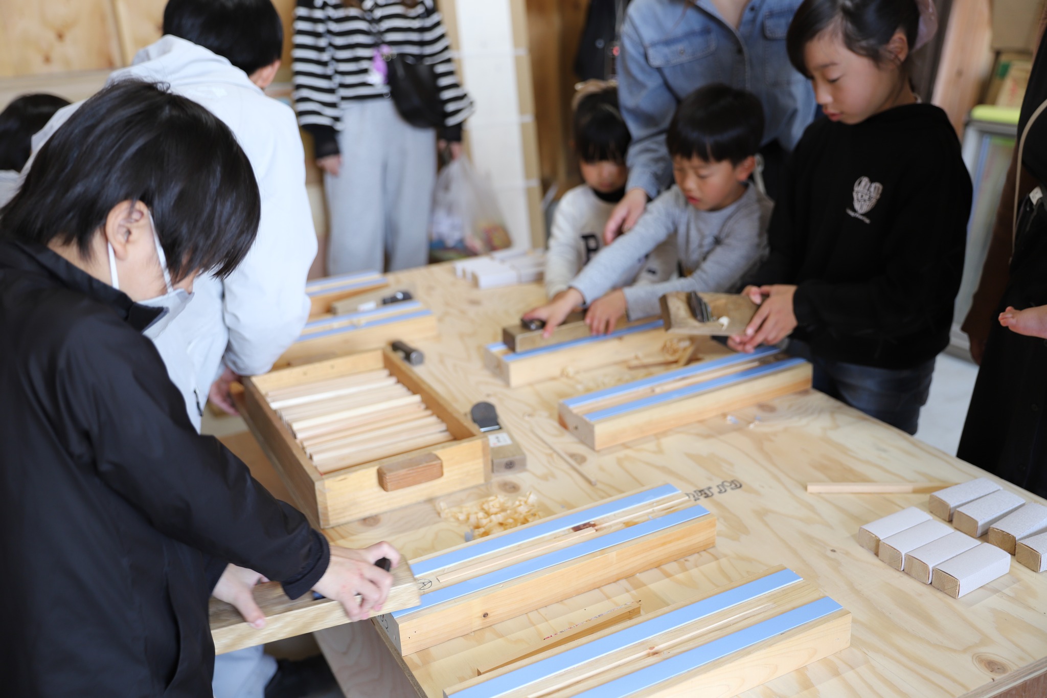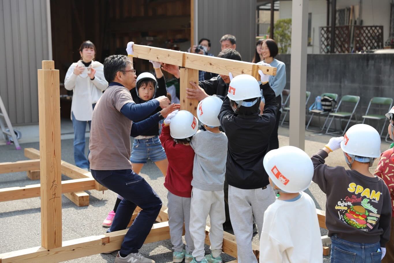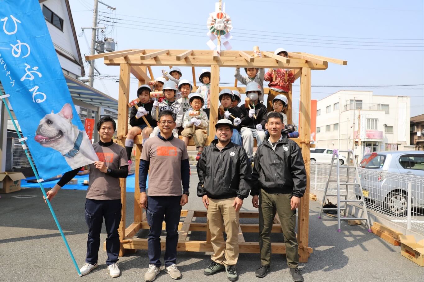 2026年03月31日 第25回イベントレポート 2026年3月28日(土)に第25回ひめぶるイベントの「子ども上棟式」をメンバーの会社 旭ホームズ㈱ で開催しました。 14名の子供達が力を合わせて小さい家を建てました。 今回も前を通る車の中から、地域の方が足を止めて眺めたりと、子供達が楽しく上棟体験をしているのを見ていただきました。 また、第25回ひめぶるイベントでは「子ども上棟式」以外にも親子で木工教室で「お箸作り」と積み木で木の強さを体験しました。 マイ箸作りは、鉋(かんな)とやすりを使って細さや丸みを自分好みで作っていました。 また、同じサイズの積み木で接着剤や金物を使わずに組むだけで強度が出ることを体験しました。 どちらも親子で楽しく体験されていました。